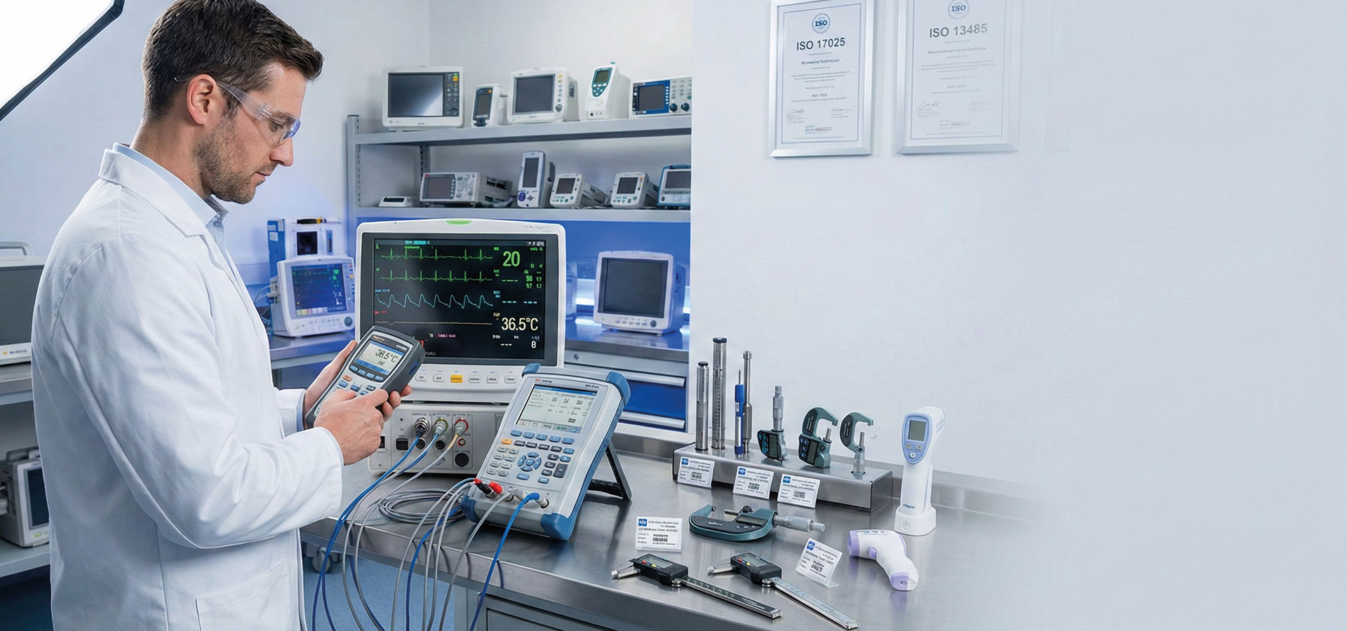 Sağlık kuruluşları için ISO 13485 uyumlu kapsamlı medikal kalibrasyon ve biyomedikal test hizmetleri.
